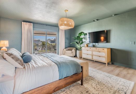 Step inside to discover a beautifully designed space that exudes warmth and comfort. The home features two master bedrooms, each with a king-sized bed, a queen bedroom, and a fun bunk bed room, ensuring everyone has their own cozy retreat. The open-concept living area is perfect for gathering, with ample seating and a smart TV for entertainment.