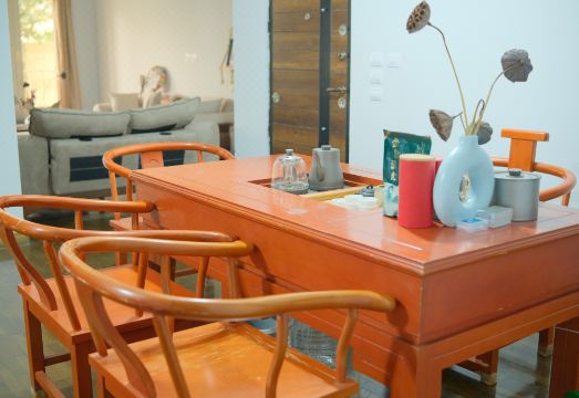 民宿提供豪华套间、独立卫浴大床房、标间及单人间等多种房型,适合个人、情侣、家庭入住,也支持长住与整层包租。配备开放式厨房、洗衣机、冰箱、宽敞阳台及投影娱乐设施,一楼公共区域的高定沙发和红榉木实木茶桌可会客或商务洽谈,让旅途像住在自己的家中。