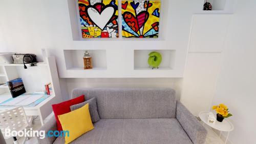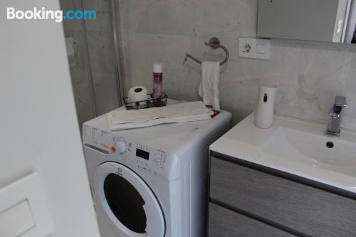 这家空调公寓配有1间卧室、起居室、带冰箱和咖啡机的设施齐全的厨房以及1间带淋浴设施和吹风机的浴室。这家公寓也为客人提供1间浴室。